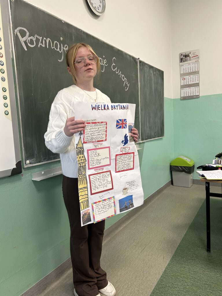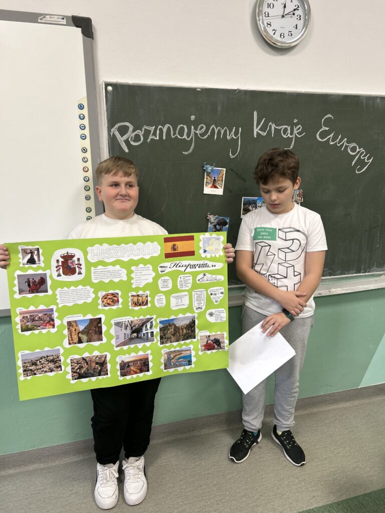 Uczniowie klasy VI na lekcji geografii poznawali podział polityczny Europy. W ciekawy sposób każdy z uczniów zaprezentował wybrany przez siebie kraj, poznając jego kulturę, tradycje, zabytki i walory turystyczne.