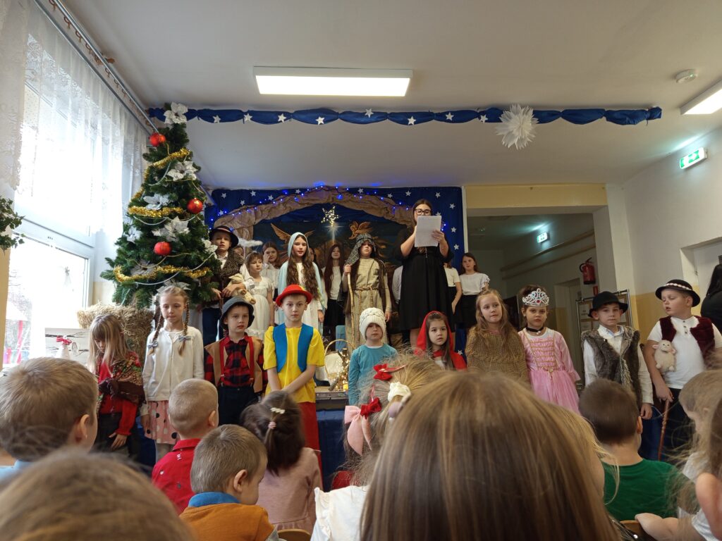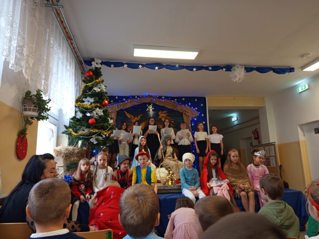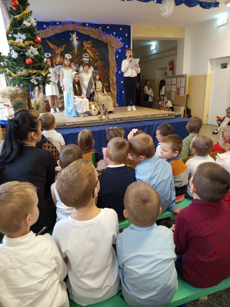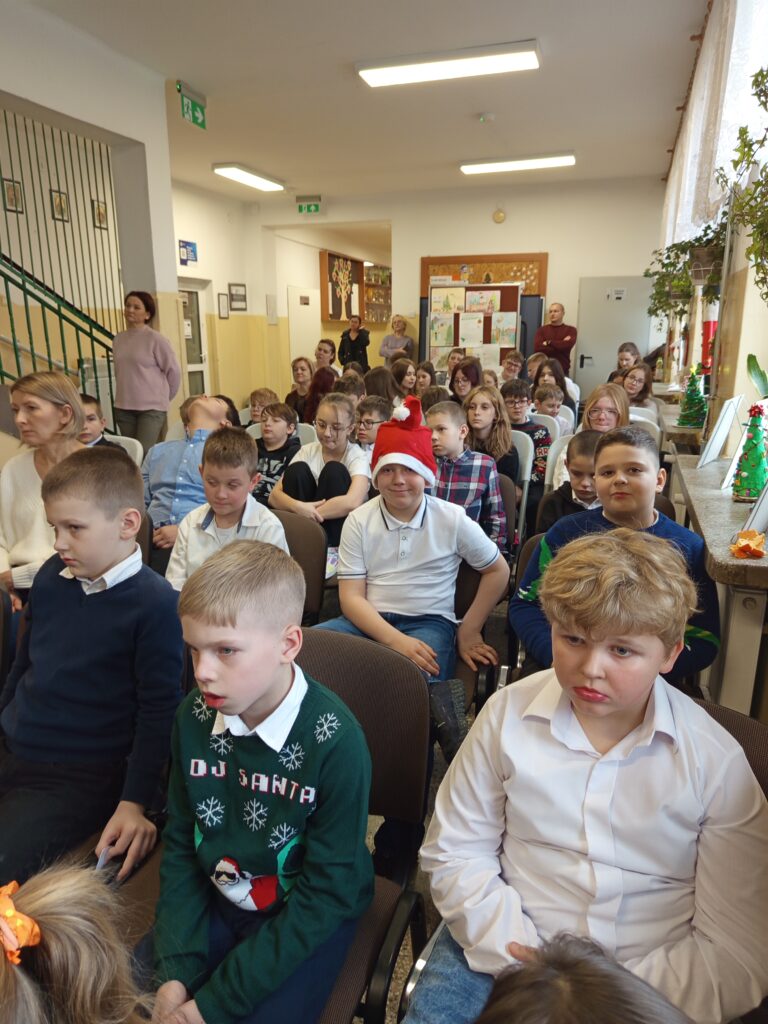 Występ uczniów został nagrodzony gromkimi brawami, a publiczność z dużym zainteresowaniem śledziła przebieg przedstawienia. Całość dopełniała świąteczna dekoracja oraz nastrojowa muzyka, które stworzyły wyjątkową, ciepłą atmosferę.